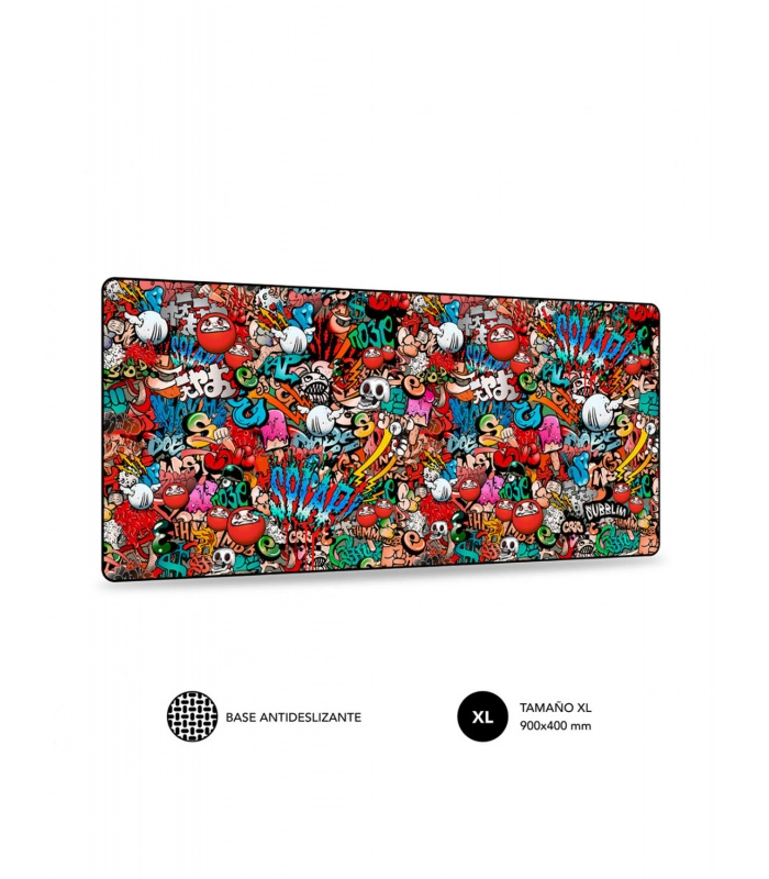Magnificas dimensiones. Disfruta de sus 90 * 40 cm, 3 mm de espesor, no sólo para el ratón sino también para tu teclado. diseño GRAFITTI sobre caucho antideslizante que garantiza su durabilidad. El marco cosido permite que no se deshilache o se deshaga.